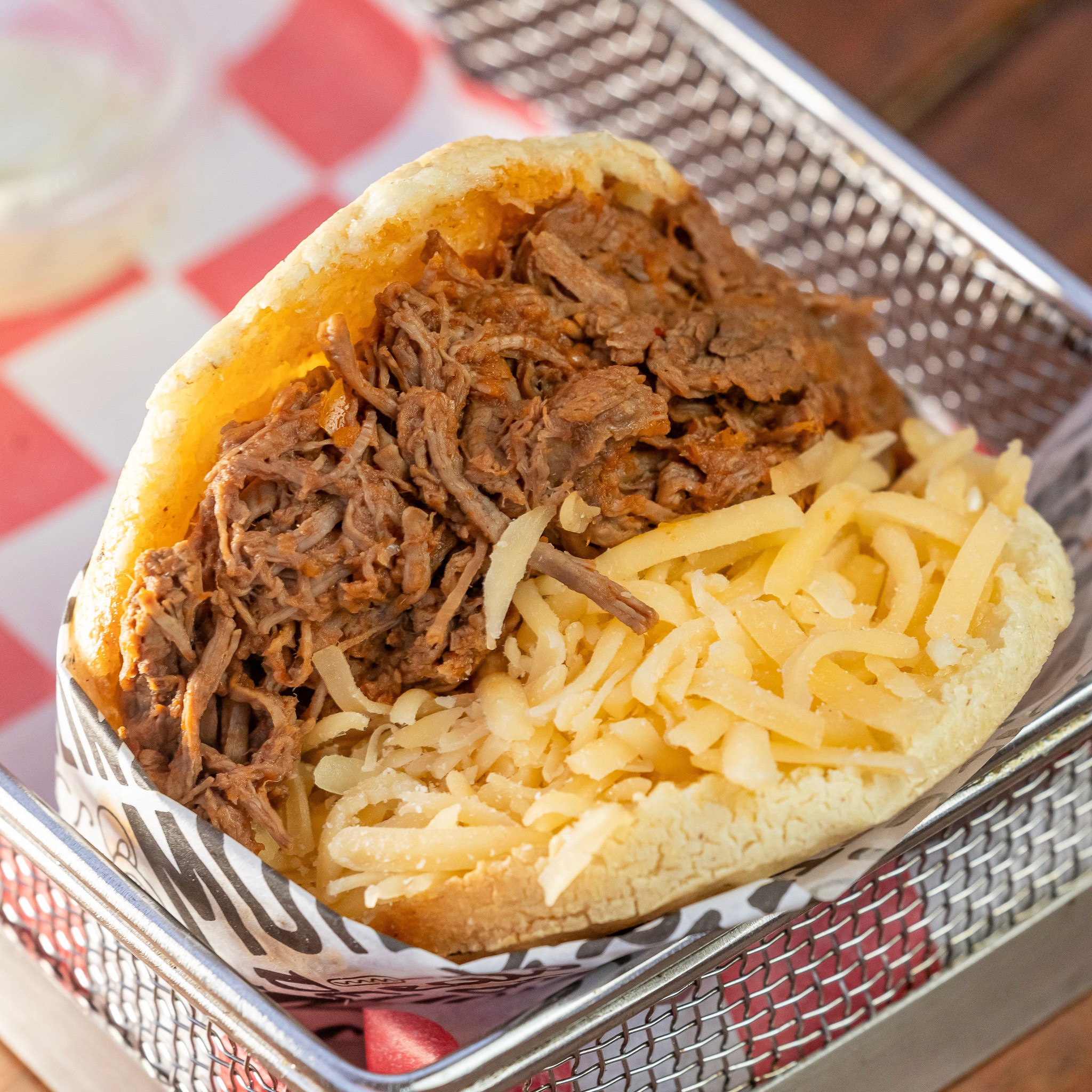 Pollo Mechado Queso de Mano Queso amarillo Cachapa Frita