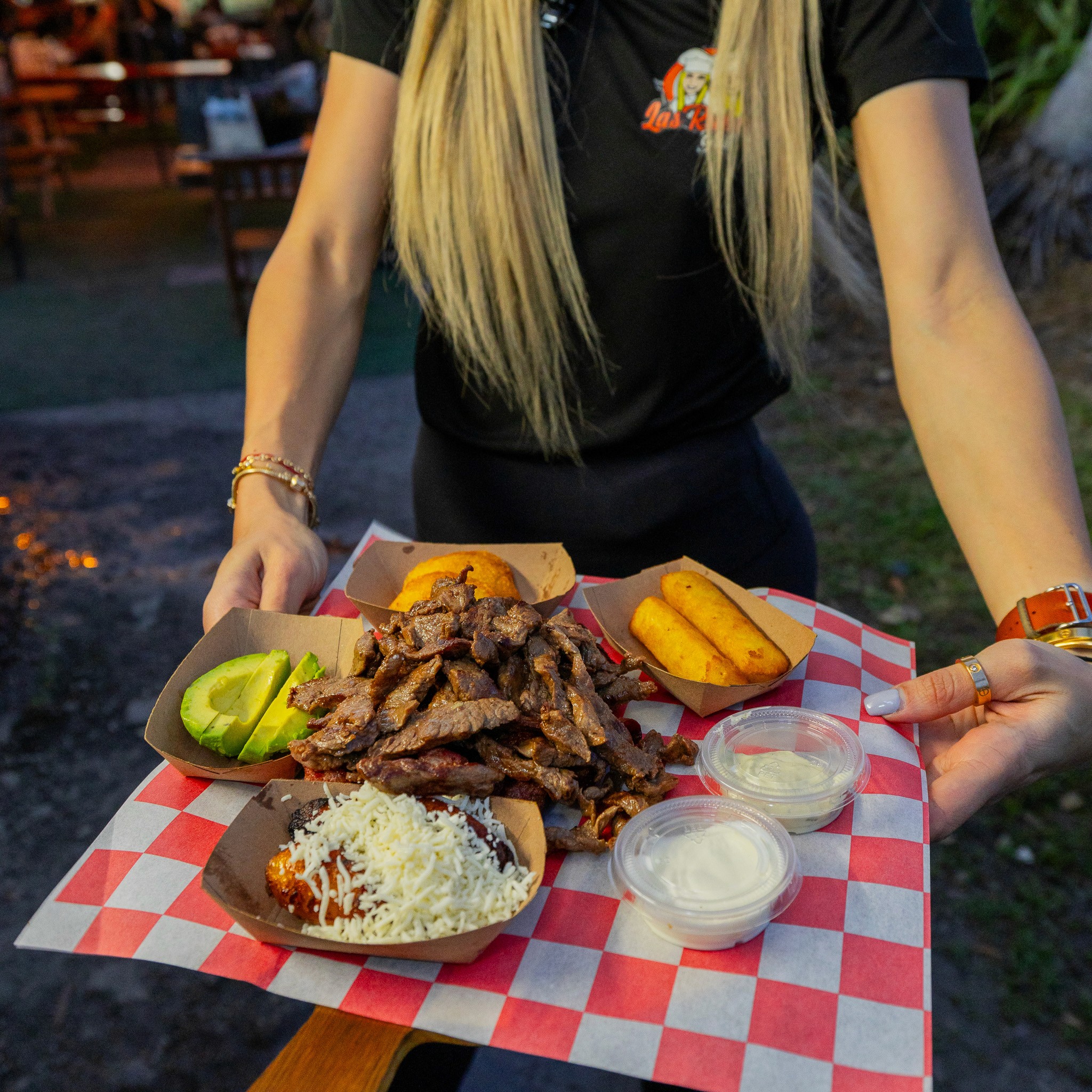 • Picahna a la leña picada • Chorizo • Croquetas de yuca frita • Aguacate • Platanos Maduros • Arepitas de queso • Salsa de ajo • Nata Precios por Cantidad de Personas: • 1 Persona: $30 • 2 Personas: $60 • 3 Personas: $90 • 4 Personas: $120 • +8 Personas: Consultar precio por porción adicional Extra Chicharron +$5 Por Persona