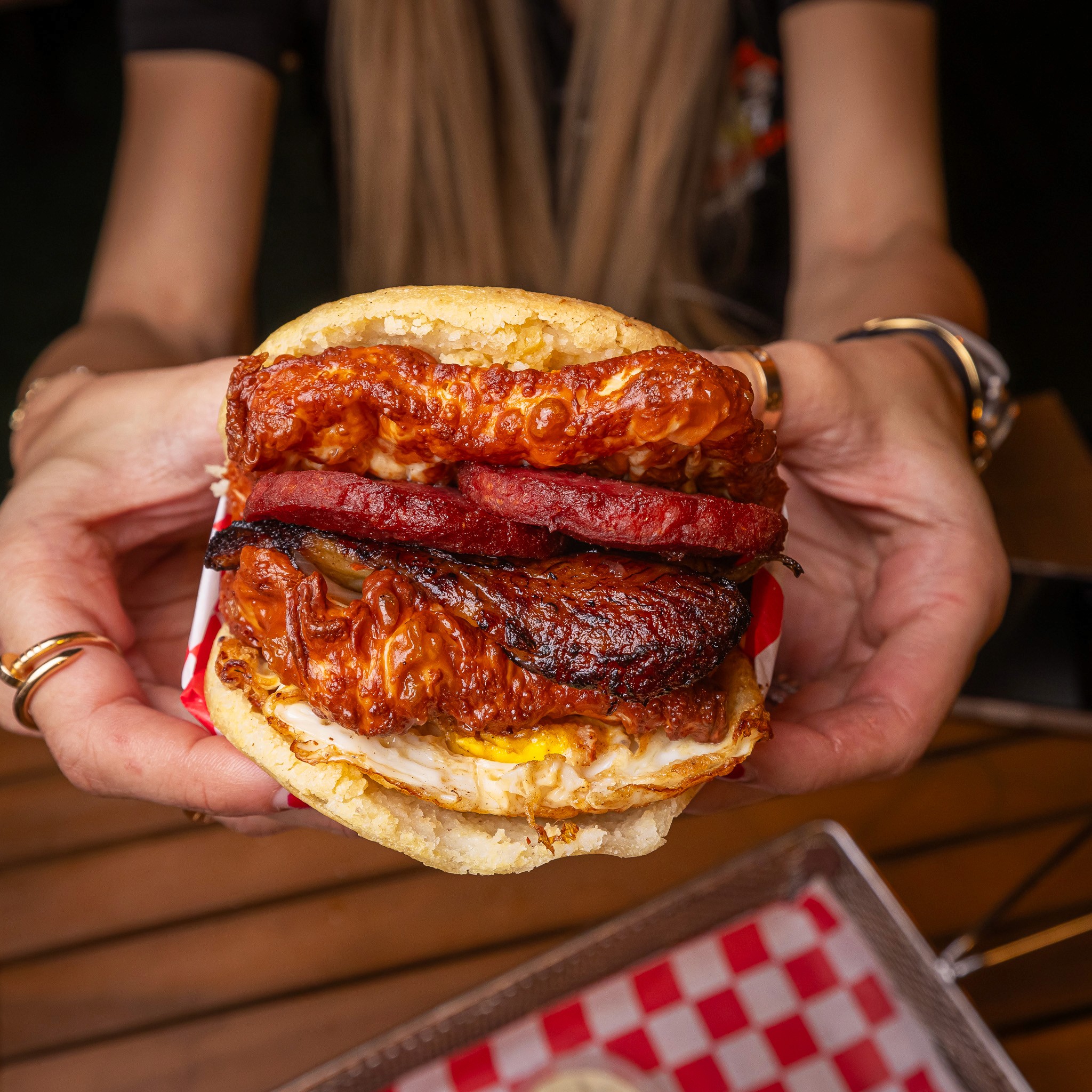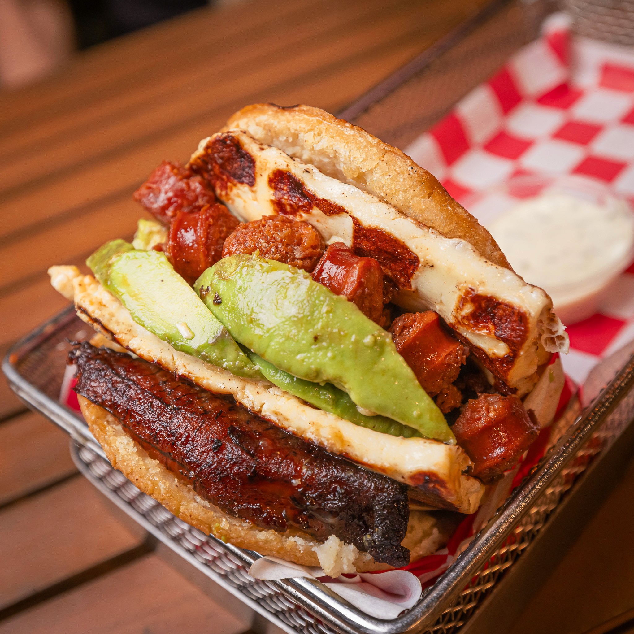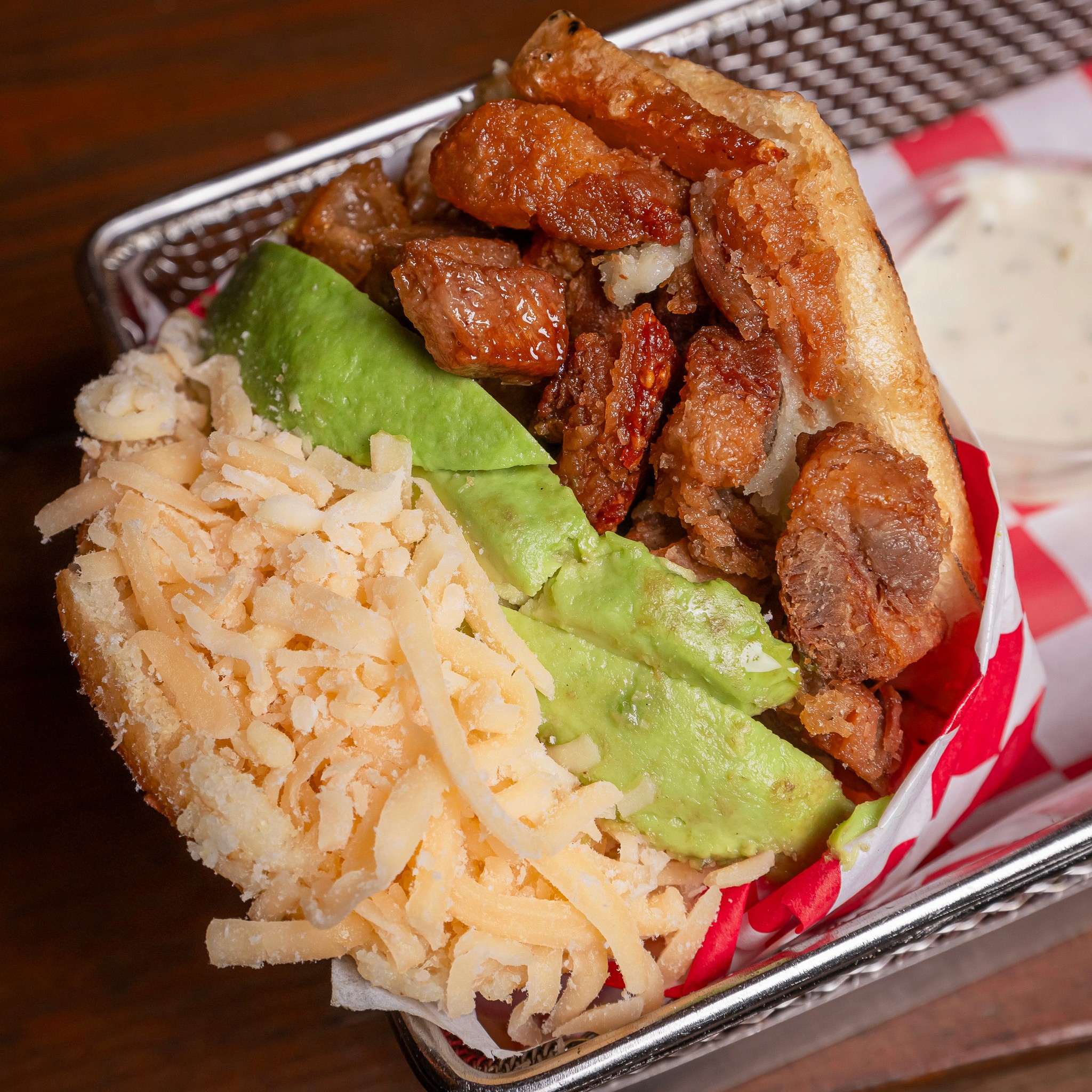 Chorizo Carne Mechada Queso amarillo Tocineta